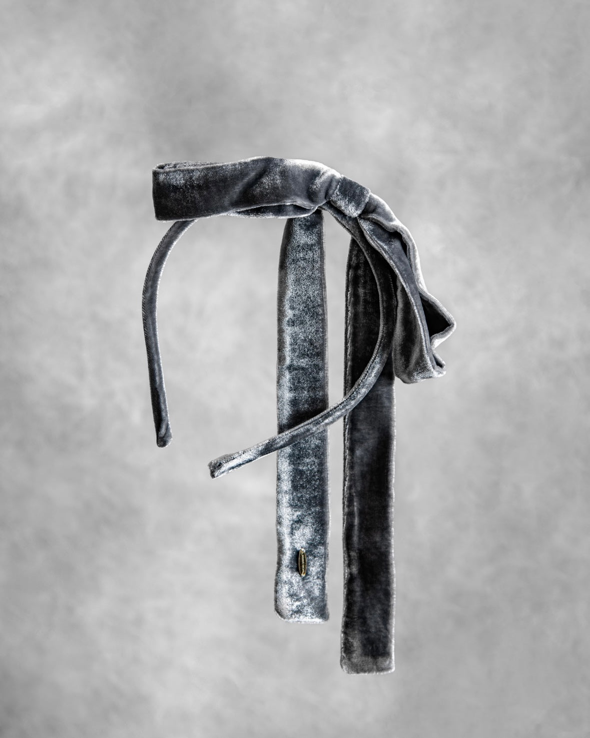 The Slouchy Kate Bow Headband is a lovely finishing touch to any look, with a single centered plush bow and face-framing silk velvet ribbons cascading down. Covered in silk velvet for optimum comfort.