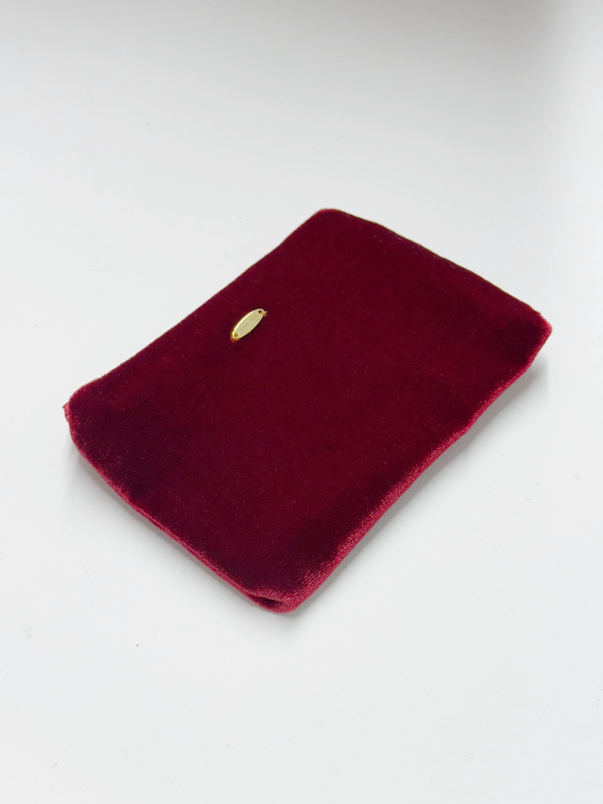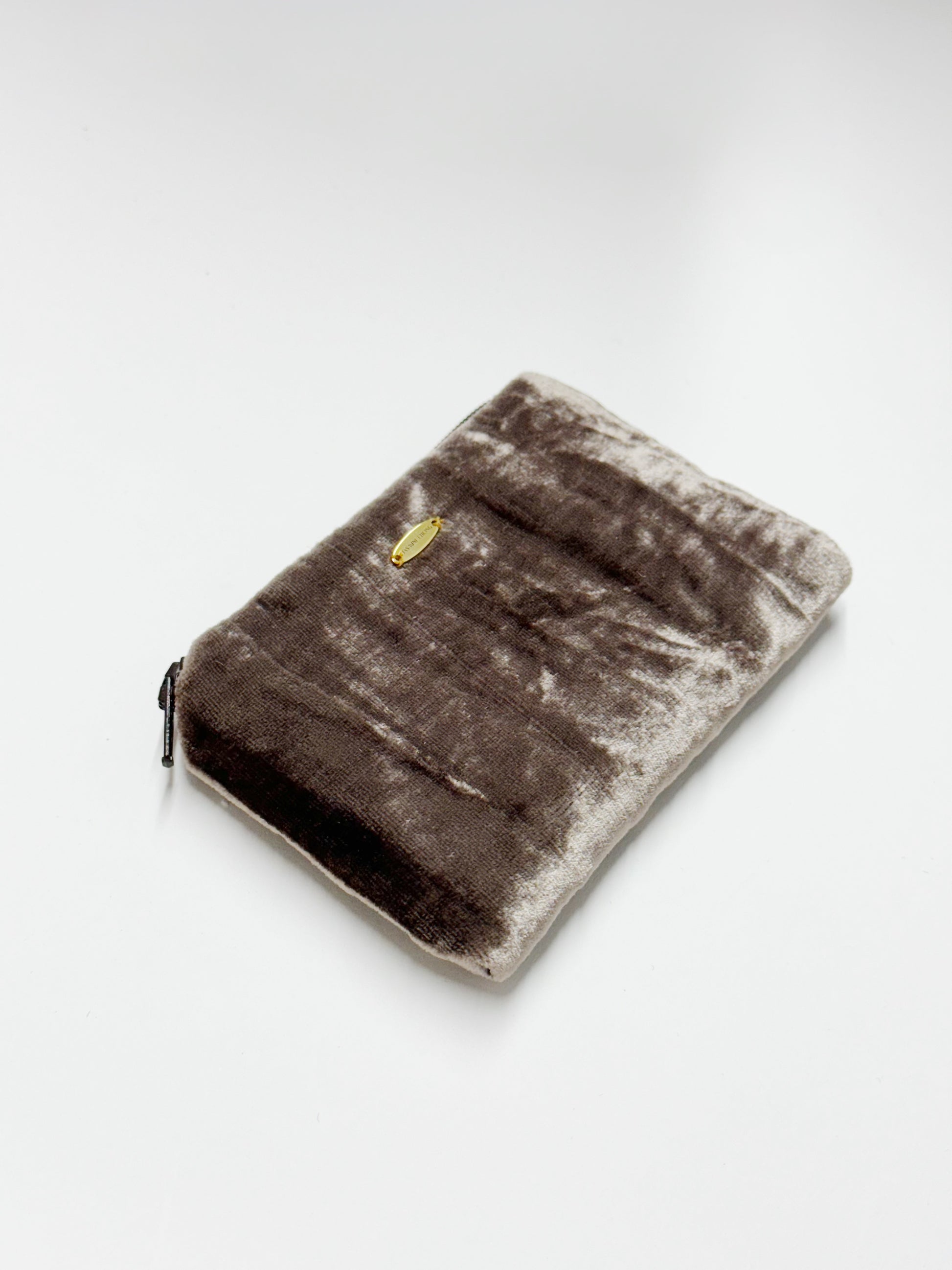 A precious small-sized zippered pouch for all your tiny essentials, lined in buttery 100% silk charmeuse. Crafted out of signature Jasmine Chong fabrics and silk velvets.