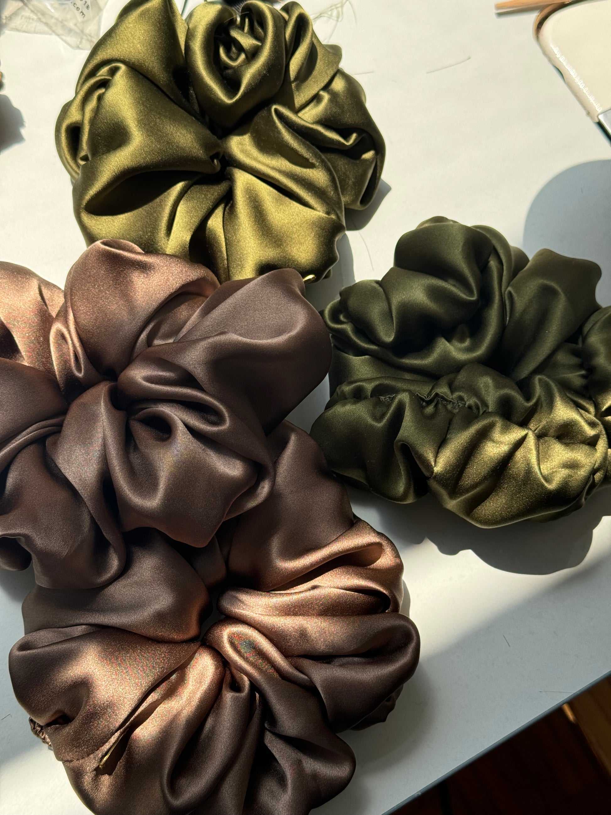 100% silk charmeuse. Each scrunchie is made by hand in New York City, by a small team of dedicated seamstresses. Please note: for hygiene reasons, this item is final sale. All Jasmine Chong hair accessories come with ivory cotton herringbone dustbags.